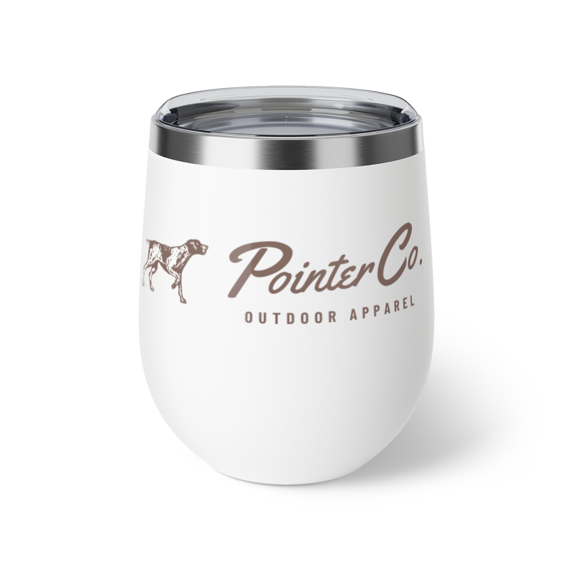 Quiet mornings on the porch, a warm brew in hand and mud on the boots — this 12oz insulated cup feels like that first deep inhale. The rounded, copper-insulated walls cradle heat or chill so your coffee stays comforting and your iced drink stays crisp. The powder-coated white finish, vintage Pointer Co. logo, and clear push-on lid make it a small, durable companion for field days, dog trials, or slow afternoons by the fire. It slips easily into a pack or cup holder and stands up to outdoor life without sweating or rusting. Bring a piece of the hunt-club ritual to everyday moments.